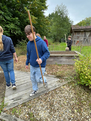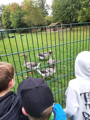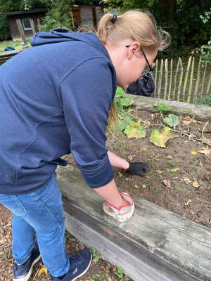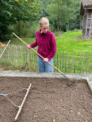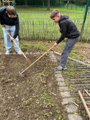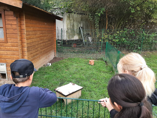 Es wird Frühling im Schulgarten. Während Schüler*innen der AG Naschgarten beginnen, die Hochbeete vorzubereiten, Erdbeeren zu pflanzen und Knoblauch zu stecken sowie die ersten Sämereien (Radieschen, Schnittlauch, Erbsen, Spinat) in die Erde bringen, tollen auf der Wiese die drei kleinen Kamerun-Lämmer umher, die Ende Februar und Anfang März geboren wurden. Und auch die erste Henne beginnt zu glucken und bleibt immer länger auf den grünen und weißen Eiern der sechs Lakenfelder- und Araukaner-Hühner sitzen.