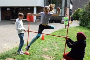 Gemeinsam Sport machen, hält fit, schweißt zusammen und macht ganz viel gute Laune. Deshalb haben wir die Experten von Trixitt an die Schule geholt, die eine Menge Sportgeräte und Bewegungsideen mitgebracht haben.