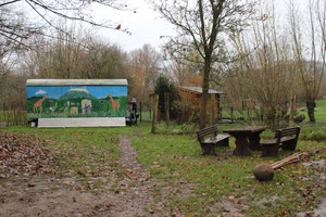Das Ökogebiet umfasst einen Naschgarten, zwei Teiche, das Insekten- und Bienenhaus, die Wiesen und Unterstände für die Tiere und nun auch das Grüne Klassenzimmer. Schafe, Hühner, Tauben, Kaninchen und Meerschweinchen wohnen auf dem Gelände. Die Tiere sind ein wichtiger Aspekt, mit dem die Kinder Verantwortung und einen artgerechten Umgang mit den Tieren erlernen. In der AG "Natur auf der Spur" bauten die FÖJ-ler einen Igelhaufen, stellten Futterstellen und Vogelhäuser her, bereiteten Vogelfutter selbst, sodass wir nicht nur Insekten bei uns willkommen heißen, sondern auch anderen Wildtieren einen Unterschlupf bieten.